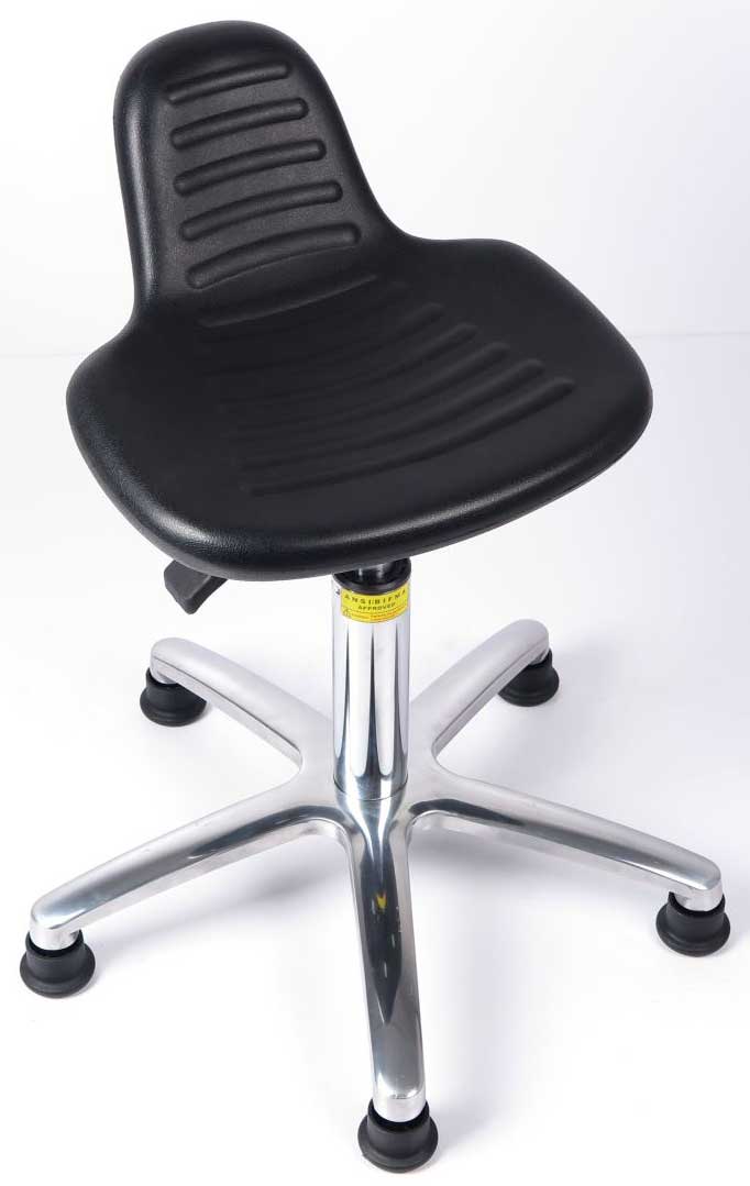 防靜電聚氨酯工作椅的坐墊和靠背是由防靜電聚氨酯材料整體注塑一體成型的;高強度一體化支撐,椅墊和椅背間采用加強型鋼板連接,坐墊高度由進口可調節氣泵