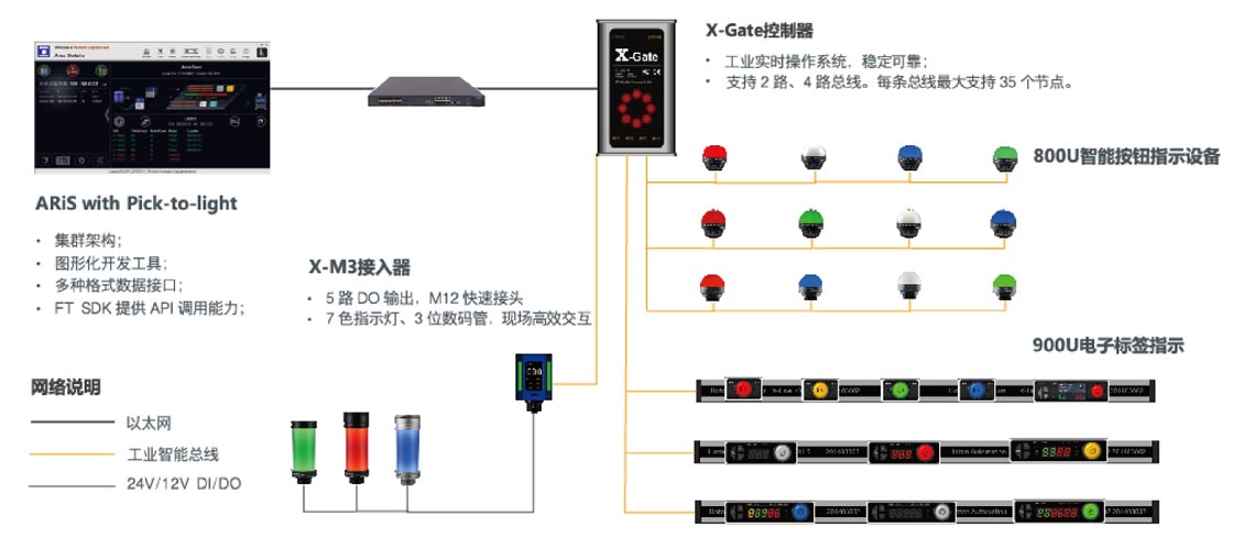 ARiS with Pick-to-light系統將增強現實人機交互系統與PTL系統相結合,借助成熟穩定的無線通信、室內定位、界面交互、亮燈引導、人工智能語音等技術.應用至生產制造領域,為一線員工提供更為便捷高效的人機交互手段。系統可廣泛應用于汽車及零配件制造、電子裝配、食品醫藥、三方物流等對于需要較多人工介入的行業,可以有效提高作業效率、作業精準性、作業結果數據實時性。