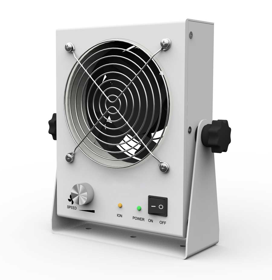 臺式離子風機采用正、負同步發射電極,通過直流高壓產生電暈放電,將空氣分子電離,產生大量正、負極性的空氣離子,并由風扇將其吹向被消物體表面進行靜電消除。可廣泛應用于電子、光電等行業。